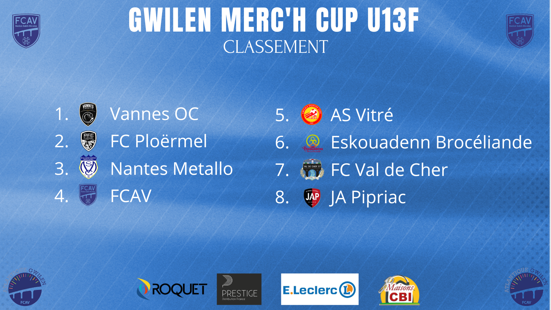 Cette édition 2024 de la Gwilen’CUP U13 et U15 Féminine aura lieu le Dimanche 8 Septembre 2024.